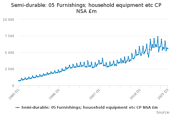 Download this time seriesSemi-durable: 05 Furnishings; household equipment etc CP NSA £m