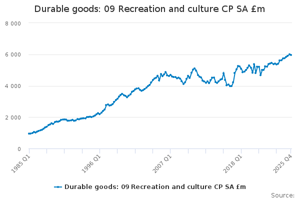 Download this time seriesDurable goods: 09 Recreation and culture CP SA £m