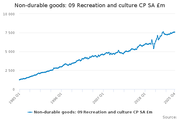 Download this time seriesNon-durable goods: 09 Recreation and culture CP SA £m