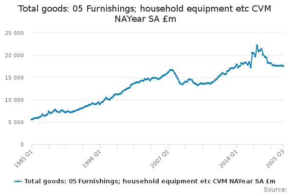 Download this time seriesTotal goods: 05 Furnishings; household equipment etc CVM NAYear SA £m