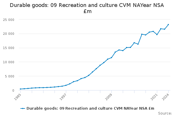 Download this time seriesDurable goods: 09 Recreation and culture CVM NAYear NSA £m