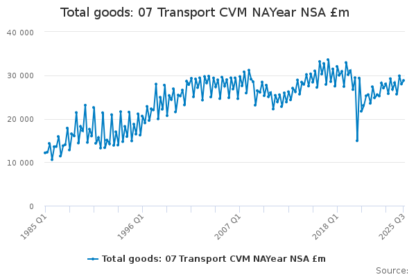 Download this time seriesTotal goods: 07 Transport CVM NAYear NSA £m