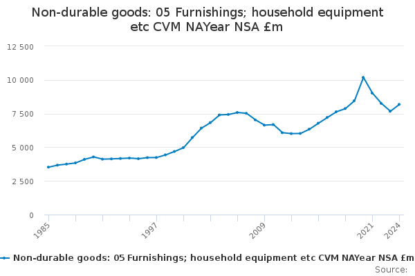 Download this time seriesNon-durable goods: 05 Furnishings; household equipment etc CVM NAYear NSA £m