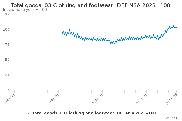 Download this time seriesTotal goods: 03 Clothing and footwear IDEF NSA 2023=100