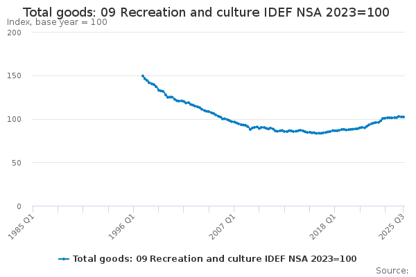 Download this time seriesTotal goods: 09 Recreation and culture IDEF NSA 2023=100