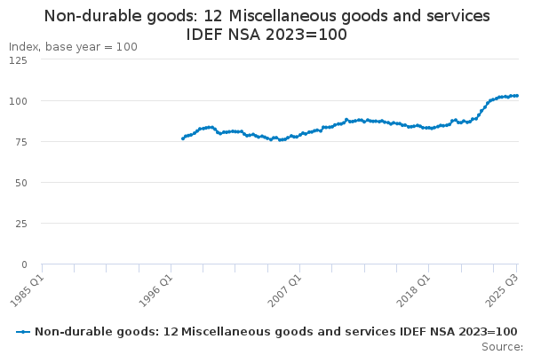 We have corrected an error in the Consumer Trends time series dataset. The previous version had incorrect implied deflator (IDEF) data for the following series between 1985 and 1996 inclusive: