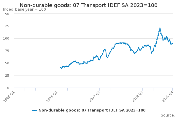 Download this time seriesNon-durable goods: 07 Transport IDEF SA 2023=100