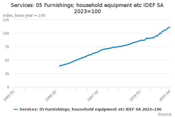 Download this time seriesServices: 05 Furnishings; household equipment etc IDEF SA 2023=100
