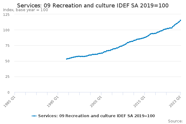 Download this time seriesServices: 09 Recreation and culture IDEF SA 2019=100
