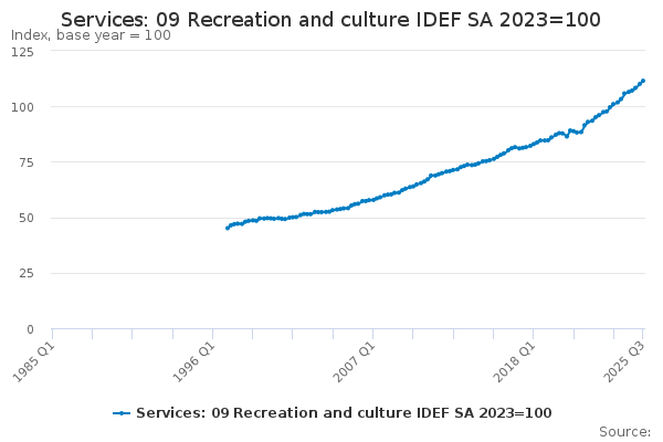 Download this time seriesServices: 09 Recreation and culture IDEF SA 2023=100