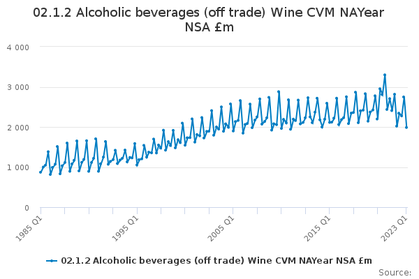 Download this time series02.1.2 Alcoholic beverages (off trade) Wine CVM NAYear NSA £m