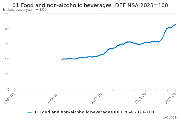 Download this time series01 Food and non-alcoholic beverages IDEF NSA 2023=100