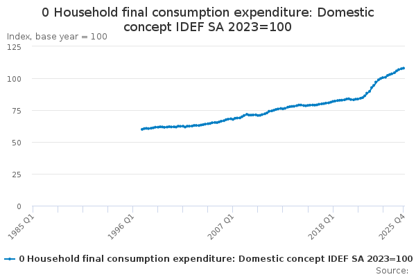 Download this time series0 Household final consumption expenditure: Domestic concept IDEF SA 2023=100