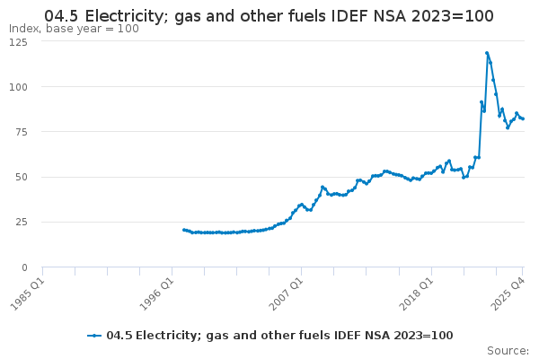 Download this time series04.5 Electricity; gas and other fuels IDEF NSA 2023=100