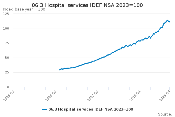 Download this time series06.3 Hospital services IDEF NSA 2023=100