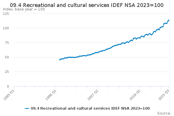 Download this time series09.4 Recreational and cultural services IDEF NSA 2023=100