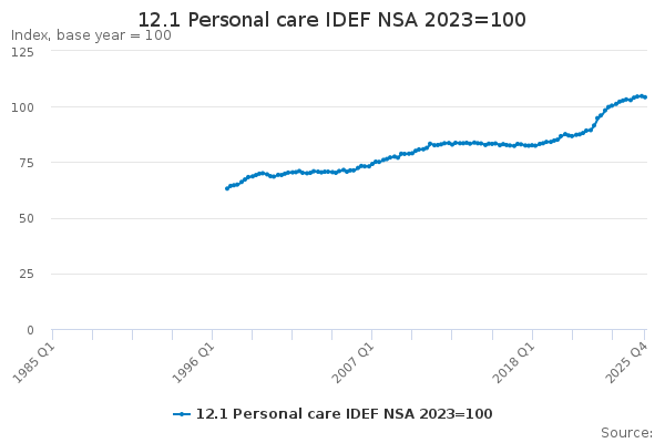 Download this time series12.1 Personal care IDEF NSA 2023=100