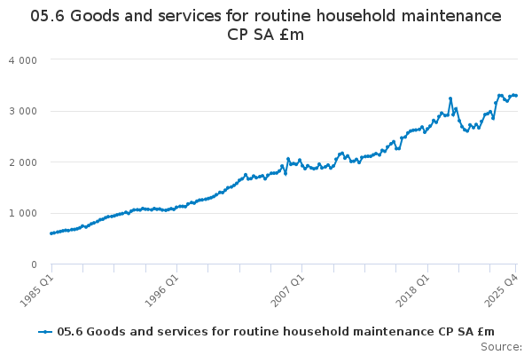 Download this time series05.6 Goods and services for routine household maintenance CP SA £m