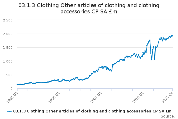 Download this time series03.1.3 Clothing Other articles of clothing and clothing accessories CP SA £m