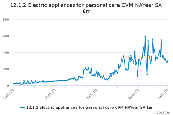 Download this time series12.1.2 Electric appliances for personal care CVM NAYear SA £m