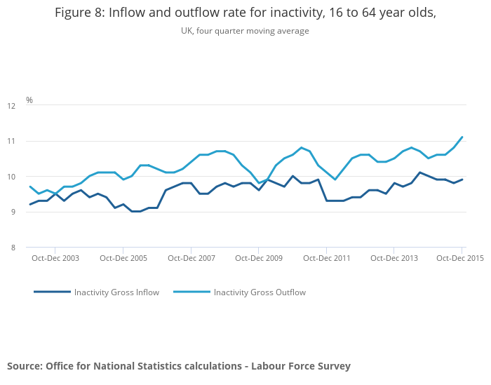 Download this chart Figure 8: Inflow and outflow rate for inactivity, 16 to 64 year olds,