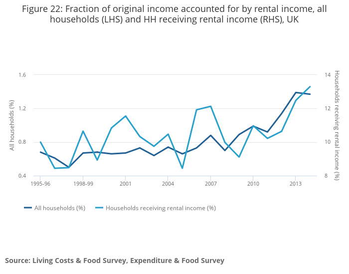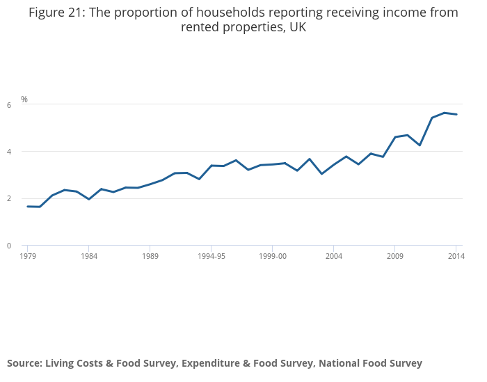 Figure 21: The proportion of households reporting receiving income from rented properties, UK