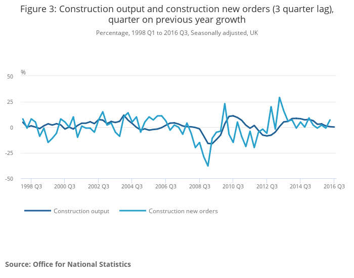 Download this chart Figure 3: Construction output and construction new orders (3 quarter lag), quarter on previous year growth
