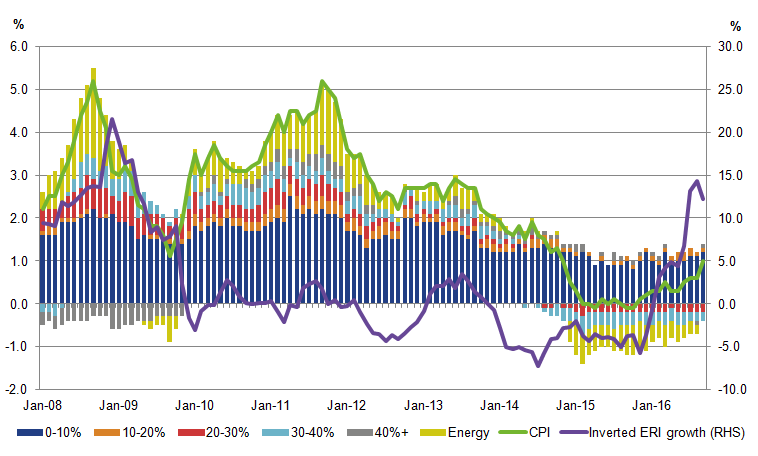 "The big change in our economic circumstances since June's referendum has of course been the sharp depreciation of sterling. So manufacturers have faced higher prices for some raw materials and that in turn has started to push up the prices of goods leaving factories.