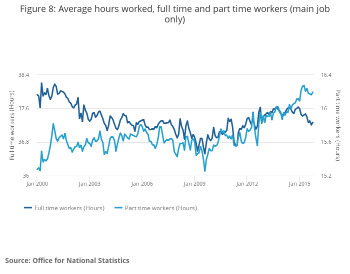 Download this chart Figure 8: Average hours worked, full time and part time workers (main job only)