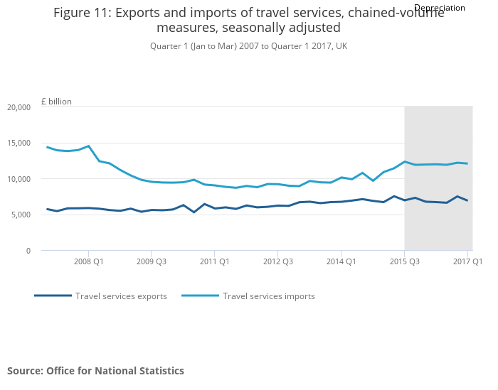 - Measuring the impact of sterling depreciation on the current account and international investment position – this includes analysis of the impact of currency movements on foreign direct investment (FDI) included in the latest FDI analysis publication but extended to Quarter 1 (Jan to Mar) 2017