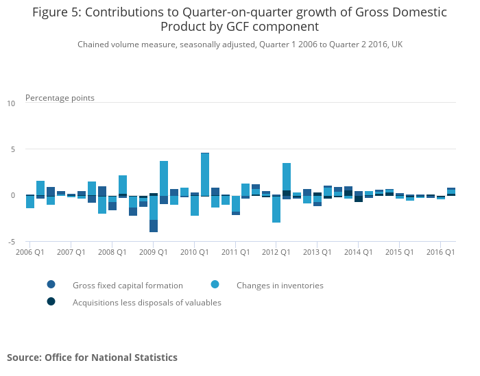 This section provides a brief summary of the main components of gross capital formation (GCF), the highest level aggregation of investment activity in the expenditure measure of gross domestic product (GDP (E)). The expenditure measure is released with the second estimate of GDP each quarter. This section provides some context for GCF data and its component parts prior to the first publication of GDP (E) data for the post-referendum period, on 25 November 2016.