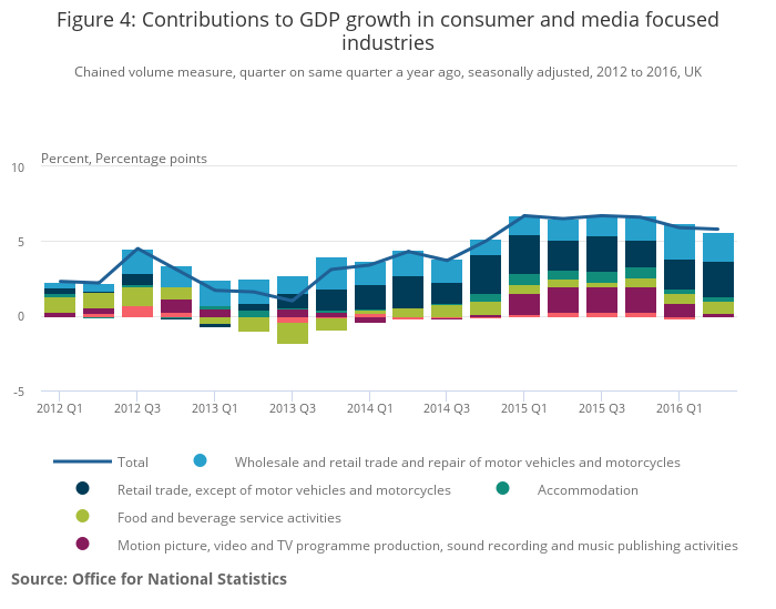 Figure 4: Contributions to GDP growth in consumer and media focused industries