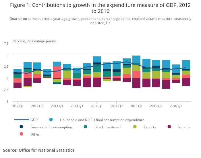 Download this chart Figure 1: Contributions to growth in the expenditure measure of GDP, 2012 to 2016