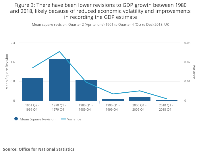 .xls .csvFigure 3 shows that the earlier periods were inherently more volatile for the UK economy relative to the most recent periods, which has also coincided with there being lower revisions of late.