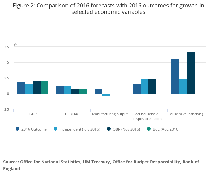 Figure 2: Comparison of 2016 forecasts with 2016 outcomes for growth in selected economic variables