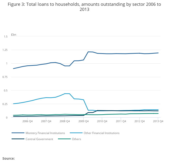 Figure 3: Total loans to households, amounts outstanding by sector 2006 to 2013
