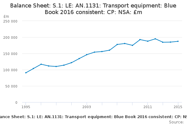 Download this time seriesBalance Sheet: S.1: LE: AN.1131: Transport equipment: Blue Book 2016 consistent: CP: NSA: £m
