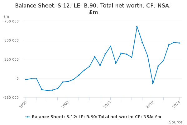 Download this time seriesBalance Sheet: S.12: LE: B.90: Total net worth: CP: NSA: £m