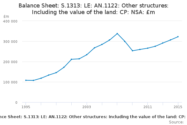 Download this time seriesBalance Sheet: S.1313: LE: AN.1122: Other structures: Including the value of the land: CP: NSA: £m