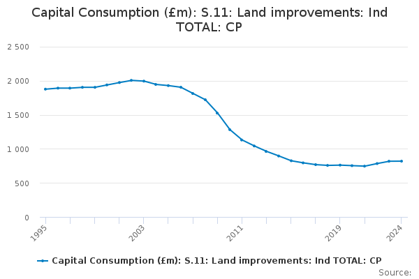 Download this time seriesCapital Consumption (£m): S.11: Land improvements: Ind TOTAL: CP