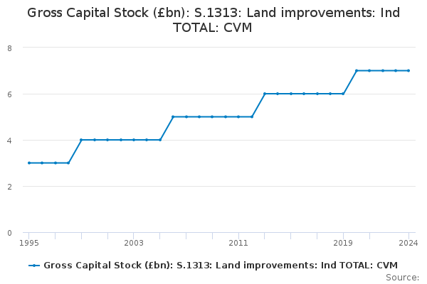 Download this time seriesGross Capital Stock (£bn): S.1313: Land improvements: Ind TOTAL: CVM