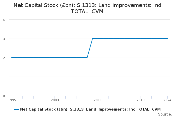 Download this time seriesNet Capital Stock (£bn): S.1313: Land improvements: Ind TOTAL: CVM