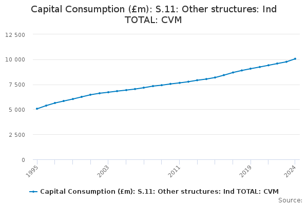 Download this time seriesCapital Consumption (£m): S.11: Other structures: Ind TOTAL: CVM