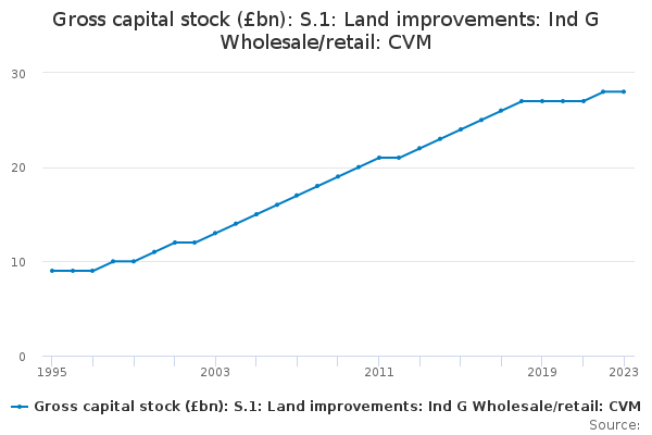 Download this time seriesGross capital stock (£bn): S.1: Land improvements: Ind G Wholesale/retail: CVM
