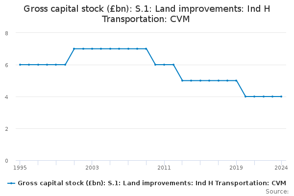 Download this time seriesGross capital stock (£bn): S.1: Land improvements: Ind H Transportation: CVM