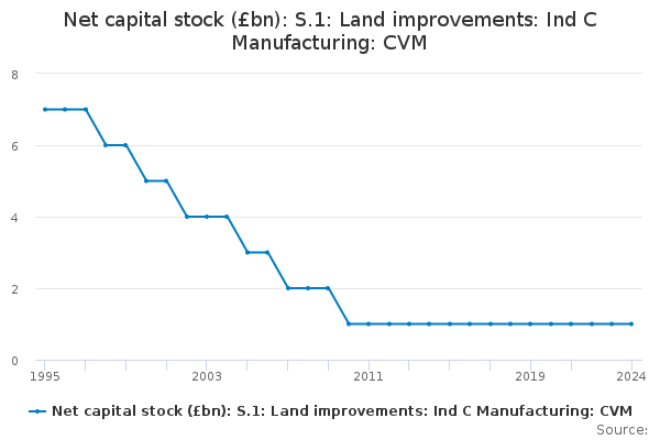 Download this time seriesNet capital stock (£bn): S.1: Land improvements: Ind C Manufacturing: CVM