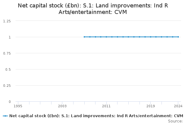 Download this time seriesNet capital stock (£bn): S.1: Land improvements: Ind R Arts/entertainment: CVM