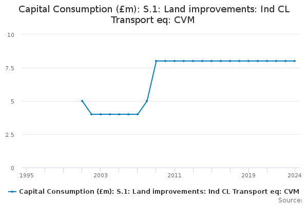 Download this time seriesCapital Consumption (£m): S.1: Land improvements: Ind CL Transport eq: CVM