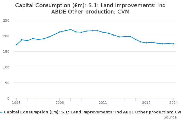 Download this time seriesCapital Consumption (£m): S.1: Land improvements: Ind ABDE Other production: CVM