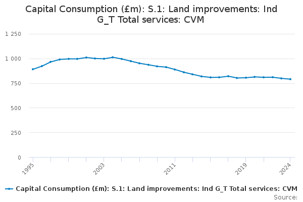Download this time seriesCapital Consumption (£m): S.1: Land improvements: Ind G_T Total services: CVM